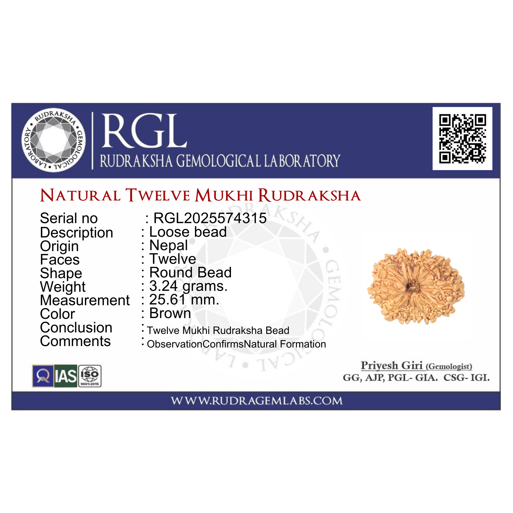 ShivaRatna 12 Mukhi Rudraksha Bead – Nepal Origin | X-Ray Verified | Handpicked | Mature & Premium Quality