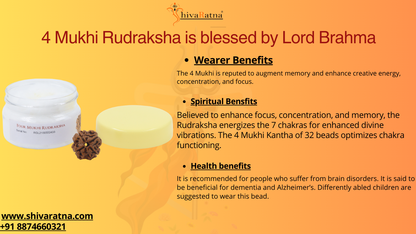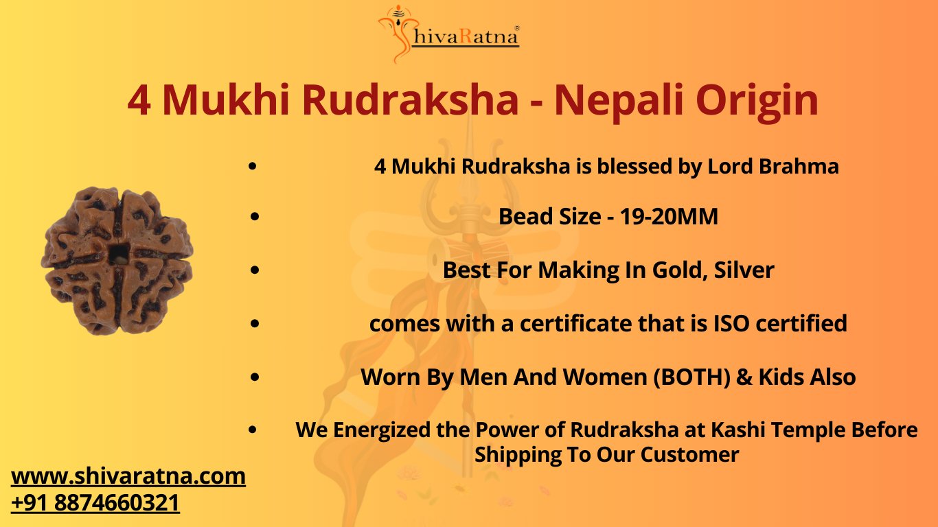 ShivaRatna 4 Mukhi/Four Face Rudraksha with Certificate of Authenticity (Elite Range)