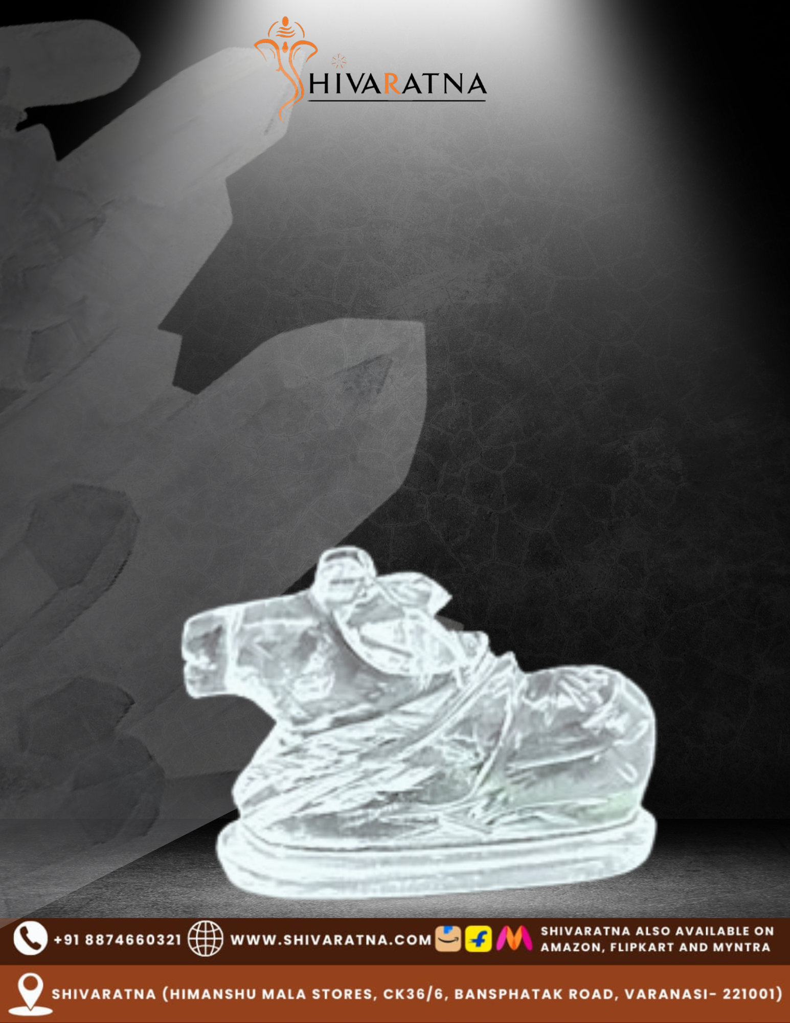 Bring home the divine presence of Nandi, the sacred vehicle and eternal devotee of Lord Shiva, crafted in pure, transparent Sphatik (Quartz Crystal). The ShivaRatna Sphatik Nandiji radiates peace, devotion, and protection, making it a powerful addition to your home temple or meditation space.
